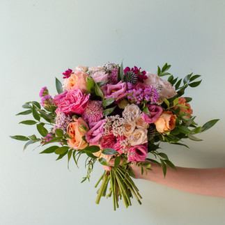 These bouquets will typically have a bloom heavy side while the back will have less blooms and more greenery.